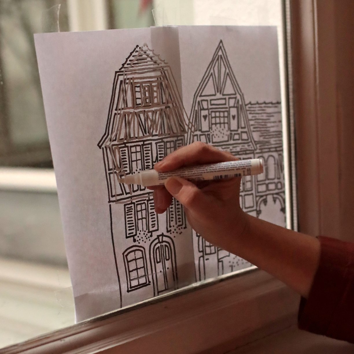 Zum auf die Fensterscheiben malen. Mit Kreidestift.