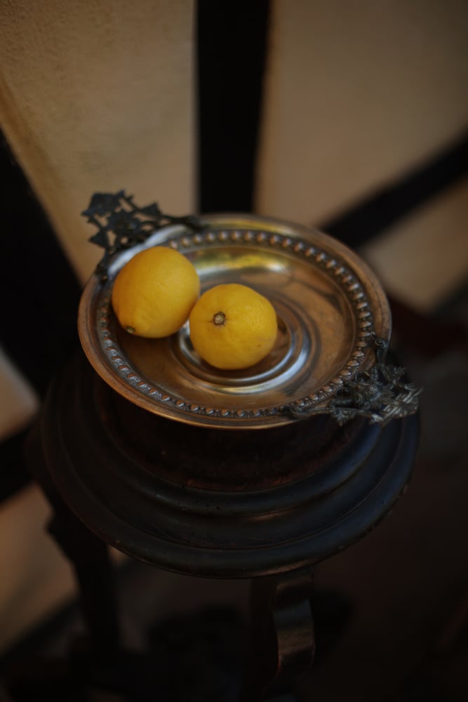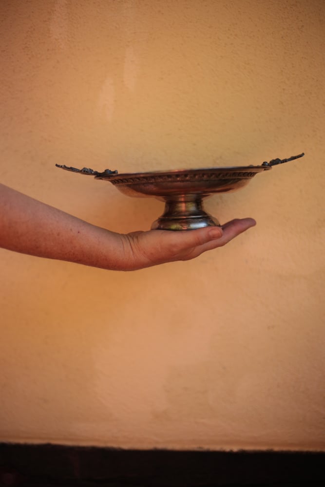 Dekorative Schale, mit Fuss und Griffen, Metall