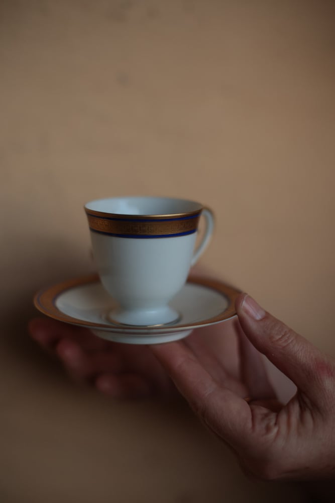Feine Espresso/Mokkatasse mit gemustertem Goldrand von Hutschenreuter