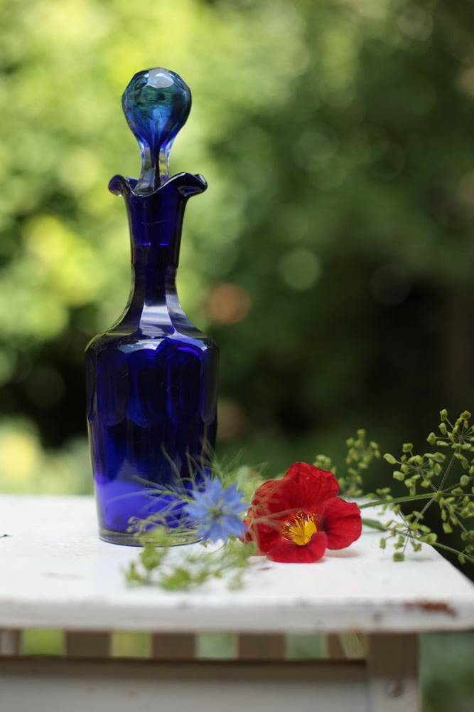 Meine Schwester vermutet, das Flakon sei aus Kobalt Glas. Ich finde es vor allem sehr dekorativ!