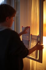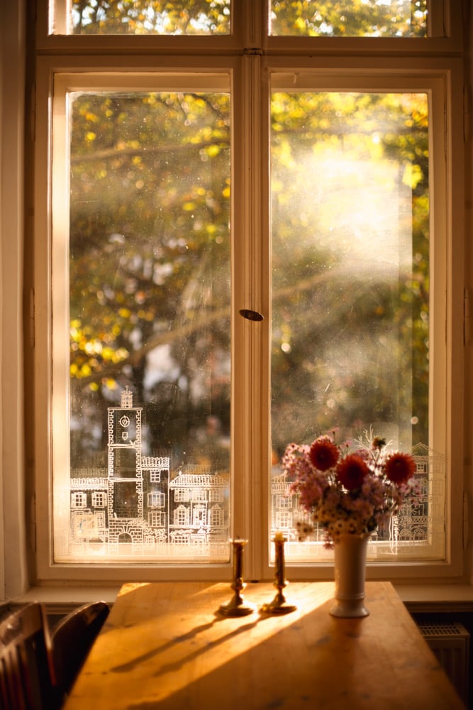 Zum auf die Fensterscheiben malen. Mit Kreidestift.