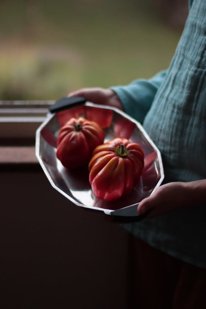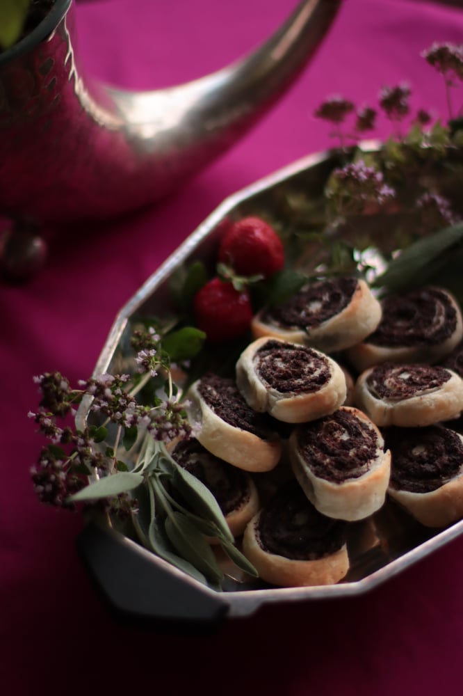 Ich stell ihn mir als Brotkorb vor, zum Servieren oder einfach nur Hinstellen von Obst oder Gemüse, für Kekse, für Gebäck… ja! Die Olivenschnecken meiner Schwester sahen SUPER darin aus!