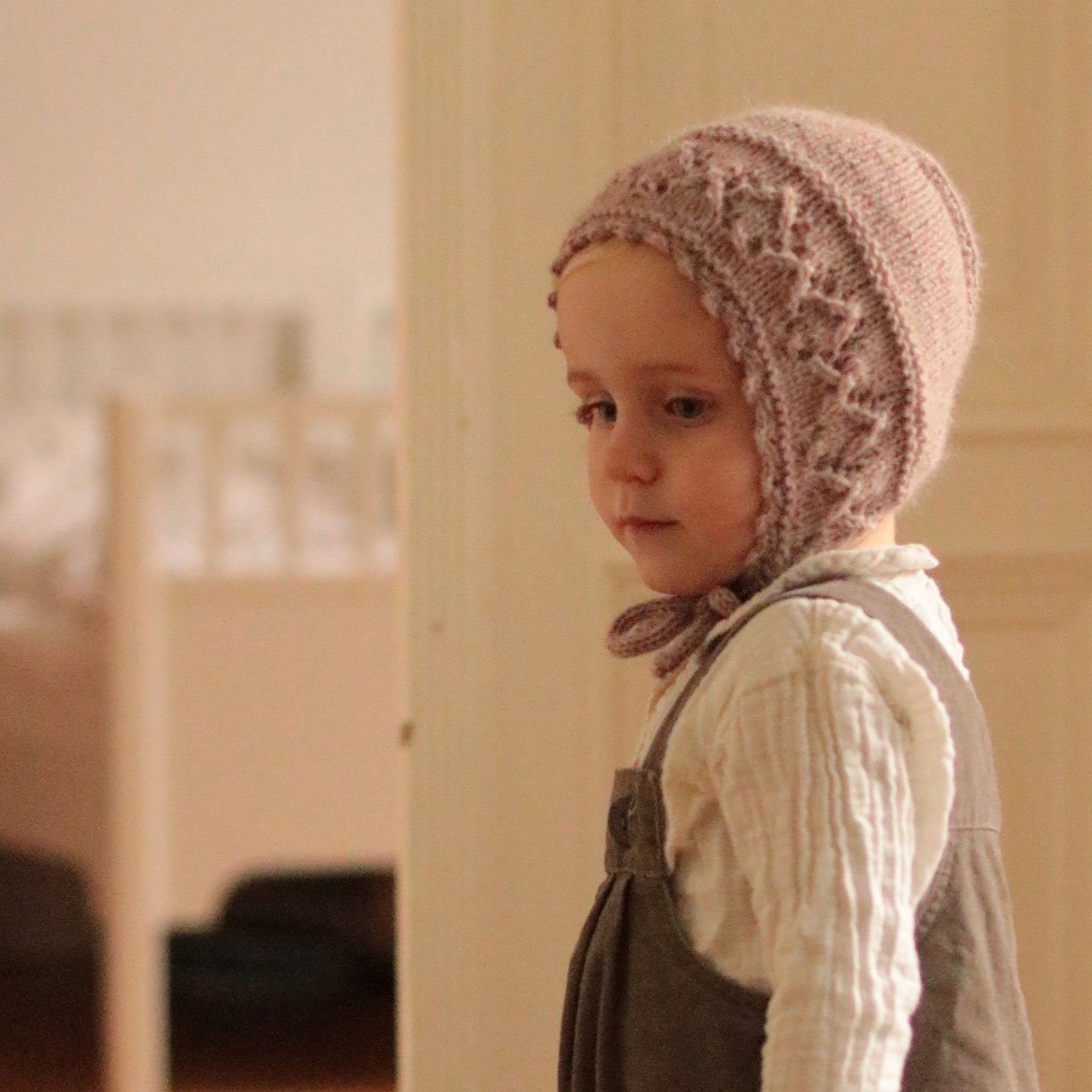 Als eine Freundin mich fragte: „Kannst Du nicht auch für meine Fünfjährige ein Bonnet machen?“ endeten alle Versuche mit der Erkenntnis: Für größere Köpfe braucht es mehr als das, was meine schlichten und geradlinigen Muster für Babys können: kräftigeres Garn, mehr Struktur, mehr Detail! Mein Almabonnet hat deshalb eine Vorderkante mit Mausezähnen und hinter dem Ajourmuster nochmal ein abschliessendes Band aus Krausrechtsmaschen...