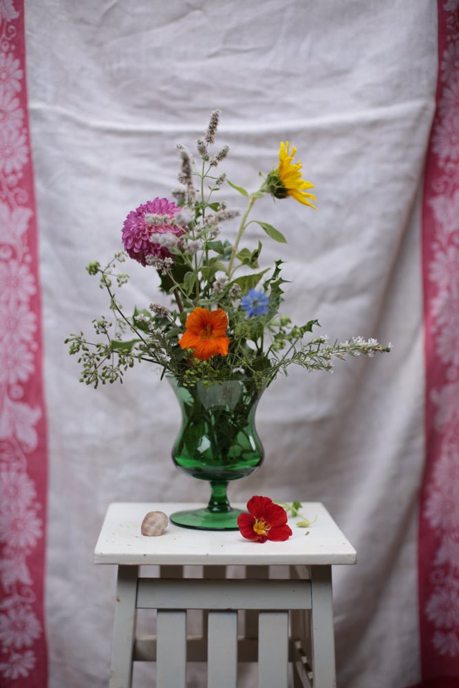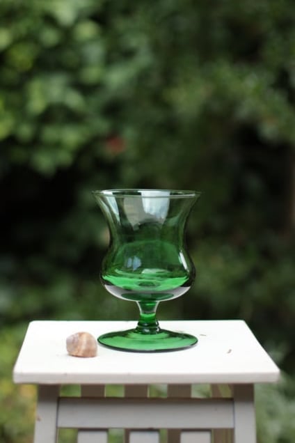 Vase, grünes Glas, mit Fuss, ca 15cm hoch